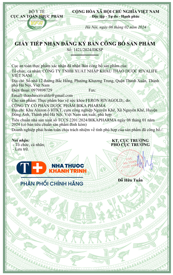 Số 1421/2024/ĐKSP – được Bộ Y Tế thẩm định và cấp phép lưu hành.